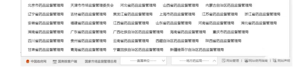 各省药监局成为药品上市后变更管理监管工作中十分重要的一环,作为一名制药人,小编今天想和大家聊聊我国地方药监局药品监督管理机构名单,在国家药监局官网(https://www.nmpa.gov.cn/)下部网址导航中点击“地方药监局”就会出现全国31个省市自治区地方药监局的机构名单,如下图: