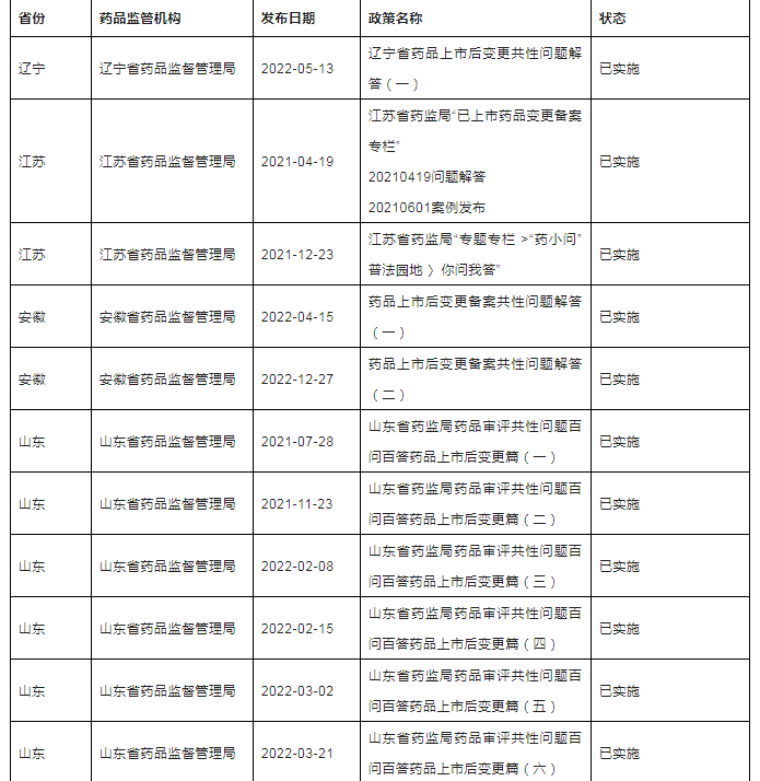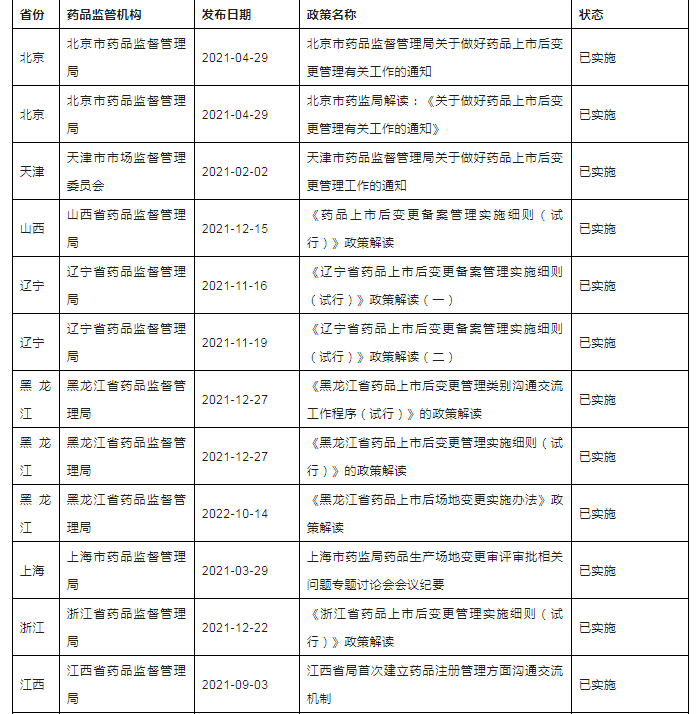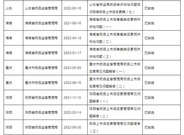 三、全国各省局上市后变更相关配套文件发布清单